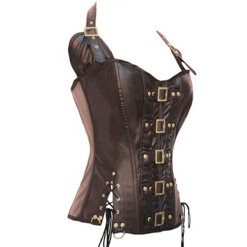 Brown Leather Buckle Corset